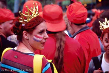 I had the great fortune of being in Amsterdam on Queens day in 2000. Queens day is like a cross between July 4th in the USA and Mardi Gras in Brazil. Imagine over a million Dutch people crowded into downtown Amsterdam, drinking and dancing all over the city all day long, and you begin to get the idea.